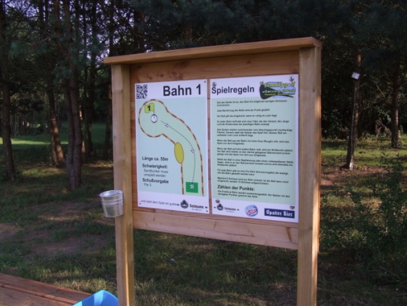 An Bahn 18 wartet die Torwand mit 3 unterschiedlich großen Löchern. Durch eines der Löcher ist der Ball zu spielen. Eine echte Herausforderung für alle ambitionierten Soccergolfer.