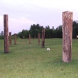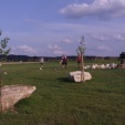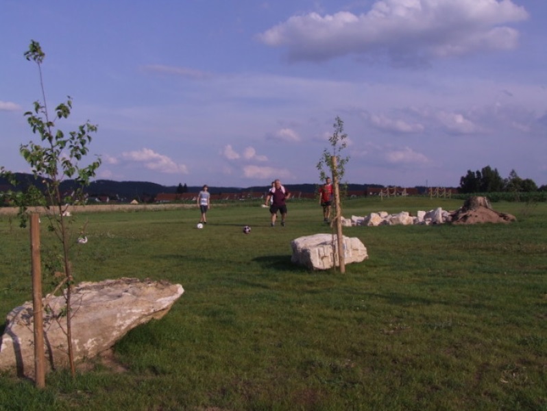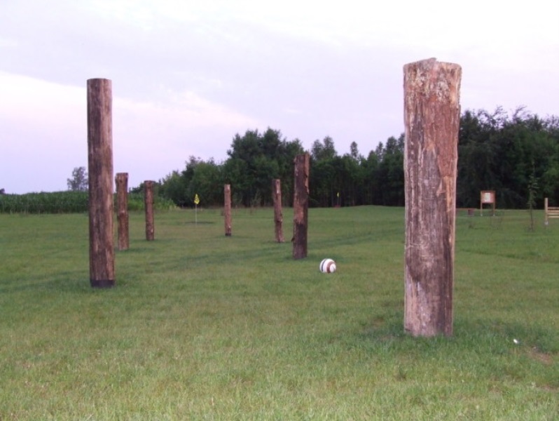 Bei Bahn 2 muss der Ball beispielsweise an 2 liegenden Baumstämmen vorbei gespielt und eingelocht werden.